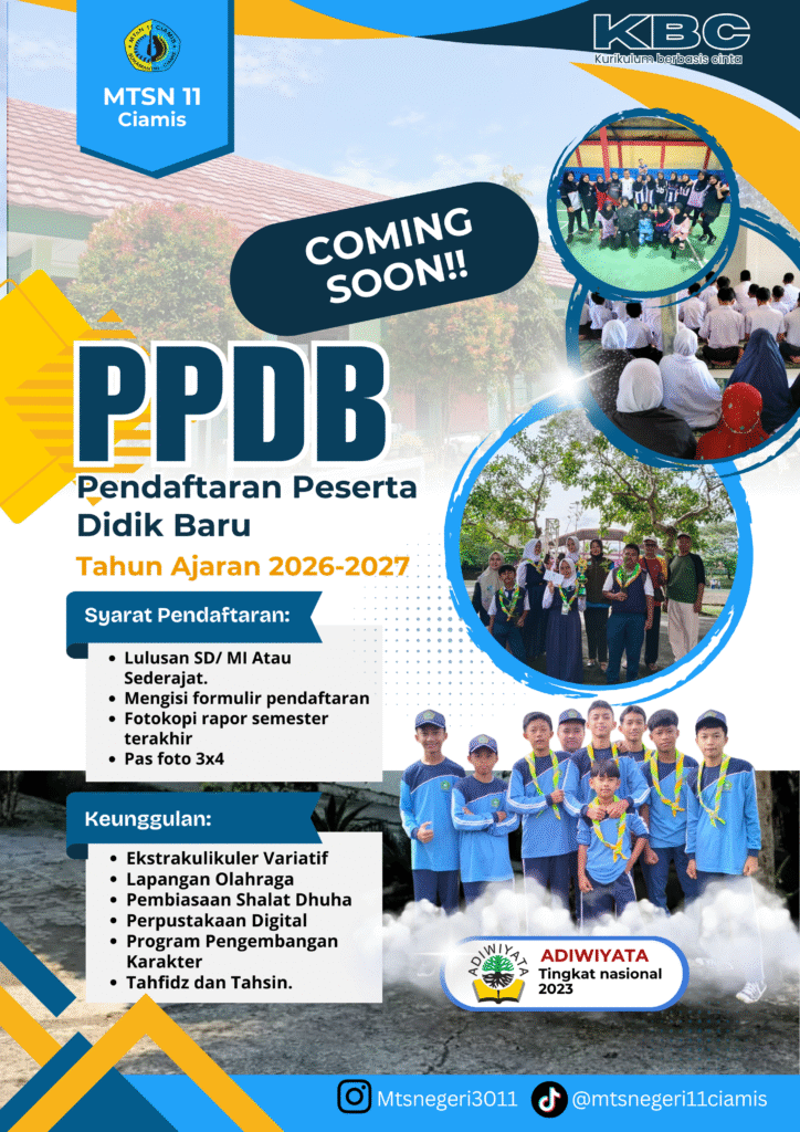 Selamat Datang di Portal Resmi PPDB MTs Negeri 11 Ciamis Tahun Pelajaran 2026/2027.